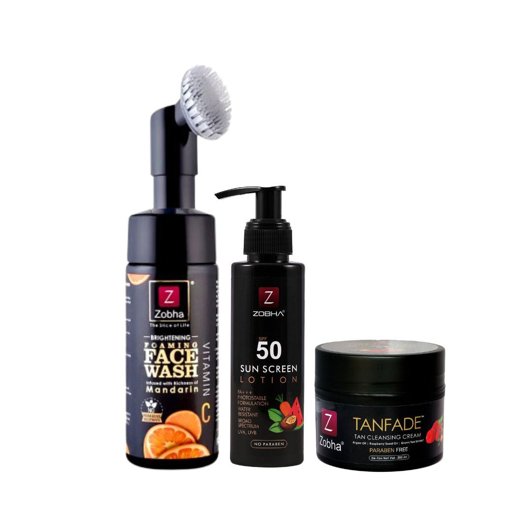 Zobha Complete Face Protection & Glow Combo (Face Wash + Sunscreen + Tan Fade Cream) Face Wash (With Brush) Deep cleansing removing dirt, oil and impurities Helps in removing dead skin cells Controls excess oil and acne Brightens skin and...